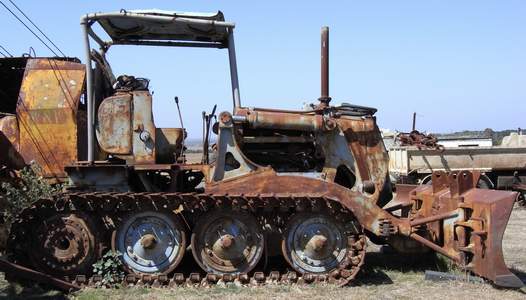 Preistman Cub and 1 ton drop ball squashing old car bodies at the Geelong Vintage Rally